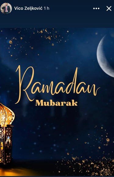 On je danas u jednoj od svojih objava na Instagramu čestitao nadolazeći mjesec Ramazan svim muslimanima.