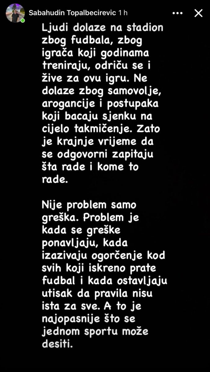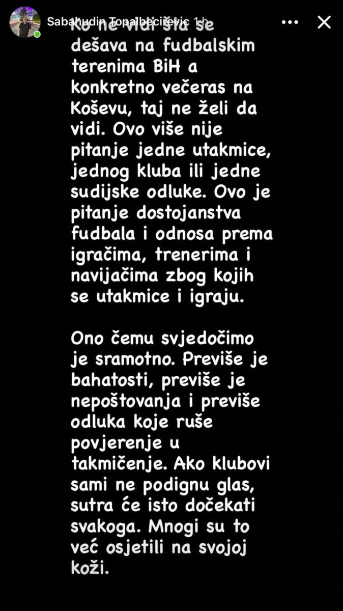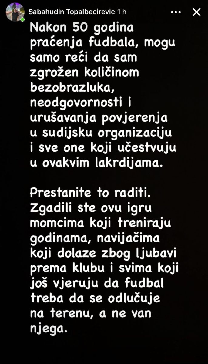 Poslije utakmice oglasio se i proslavljeni bh. komentator Sabahudin Baho Topalbećirević.