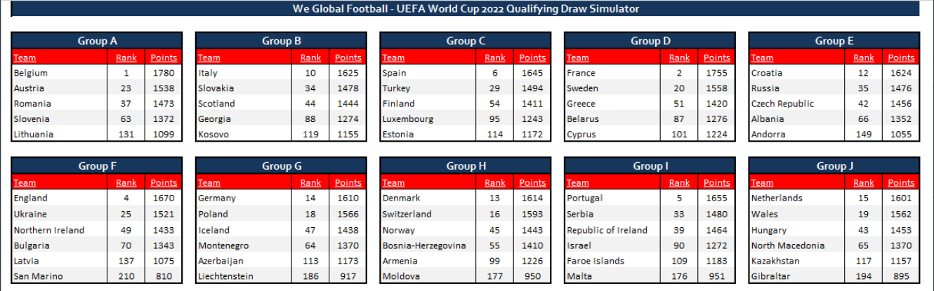 Na stranici We Global Football simuliran je žrijeb kvalifikacija, a naša reprezentacija za protivnike je dobila Dansku, Švicarsku, Norvešku, Armeniju i Moldaviju.
