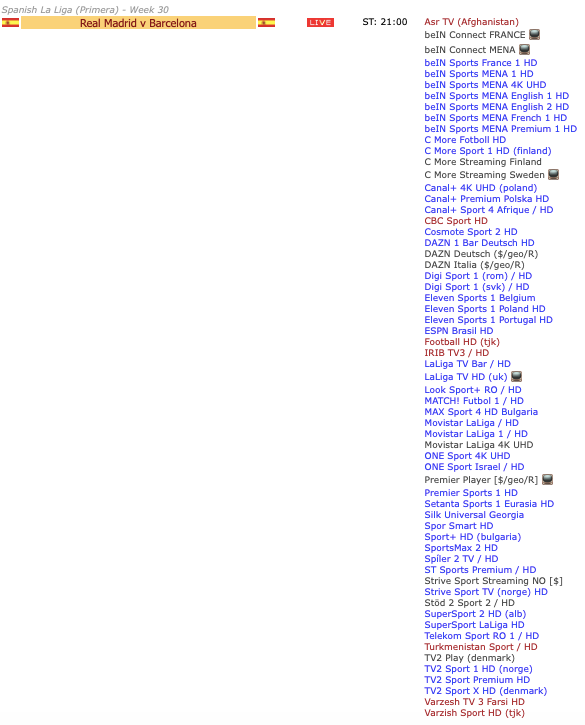 Na slici ispod pogledajte listu svih kanala koji prenose večerašnju utakmicu.