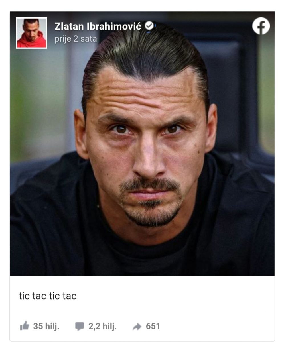 Ibra je aktivan i na društvenim mrežama, a novom objavom zagolicao je maštu. Objavio je sliku sa opisom 'tic tac tic tac' što se može zaključiti i kao sat koji odbrojava povratak na teren.