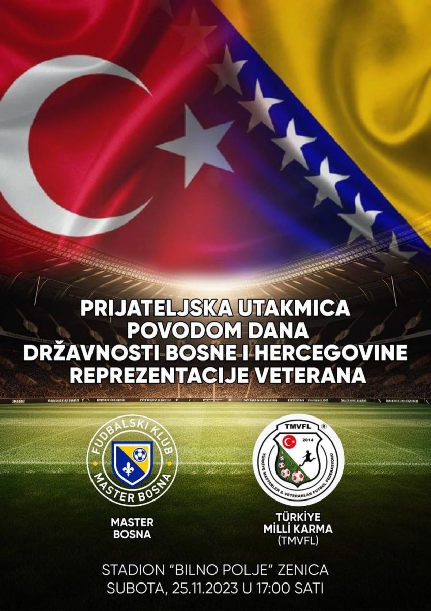 U sklopu obilježavanja 25. novembra – Dana državnosti Bosne i Hercegovine, tog će dana na stadionu Bilino polje u Zenici biti odigrana i revijalna fudbalska utakmica amaterskih veteranskih reprezentacija Turske i Bosne i Hercegovine.
